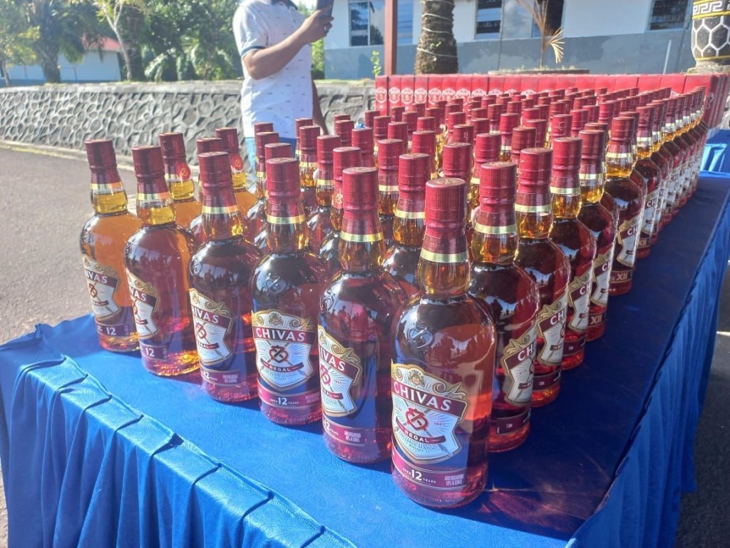Adapun barang ilegal yang berhasil diamankan yaitu miras non cukai dengan merk dagang/brand chivas regal sebanyak 143 botol, serta barang bukti lain berupa satu unit speedboat, dan satu buah badik kecil. Selain itu juga diamankan dua orang Anak Buah Kapal (ABK) Warga Negara Indonesia (WNI) tanpa membawa identitas yang sampai saat ini berstatus sebagai kurir.