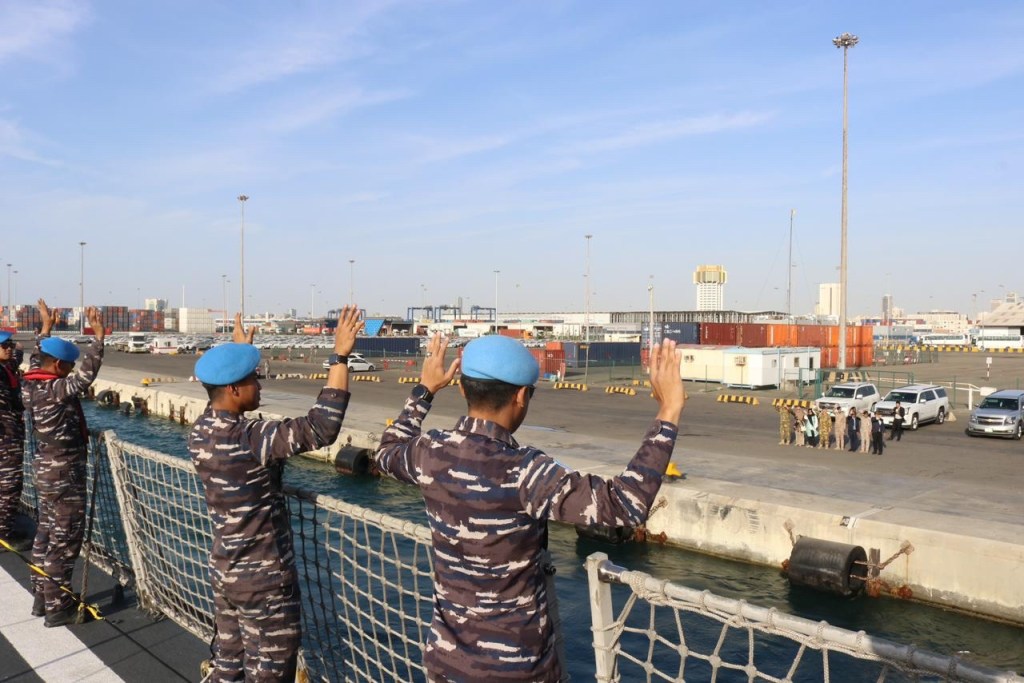 “Saya sangat bangga atas pengabdian prajurit sekalian, yang telah mengharumkan bangsa Indonesia atas berbagai capaian yang diperoleh selama bertugas dibawah bendera PBB. Kami mendoakan agar KRI Frans Kaisiepo-368 tiba di Indonesia dengan aman dan selamat,” ucap HOC KJRI Jeddah Soeharyo Tri Sasongko.