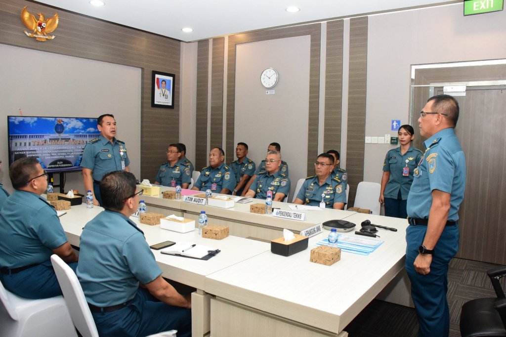 Inspektur Pushidrosal (Irpushidrosal) Laksamana Pertama TNI Yudi Cahyadi membuka Taklimat Awal Audit Kinerja Satker Jajaran Pushidrosal bertempat ruang Indonesian Hydrographic Data Center (IHDC) Pushidrosal, Jakarta Utara, Selasa (16/1/2024).