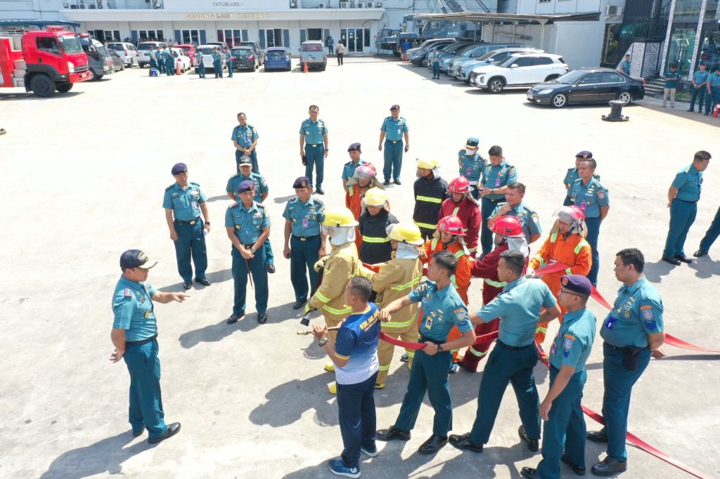 Dalam latihan tersebut, Panglima Komando Lintas Laut Militer Laksda TNI Hudiarto Krisno Utomo, PSC (J)., M.A., M.M.S., CHRMP turut hadir di lokasi latihan untuk memastikan prosedur penanggulangan kebakaran dapat dilaksanakan oleh prajurit Kolinlamil dengan baik dan benar.