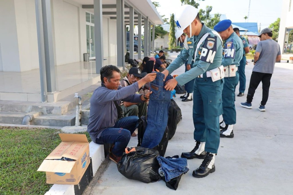 TNI Angkatan Laut (TNI AL) dalam hal ini Fleet One Quick Respond (F1QR) Lanal Dumai jajaran Koarmada I berhasil mengamankan 24 orang Pekerja Migran Indonesia (PMI) non prosedural yang kembali dari Malaysia di Pesisir Pelintung, Dumai Prov. Riau, Selasa (30/1/2024).