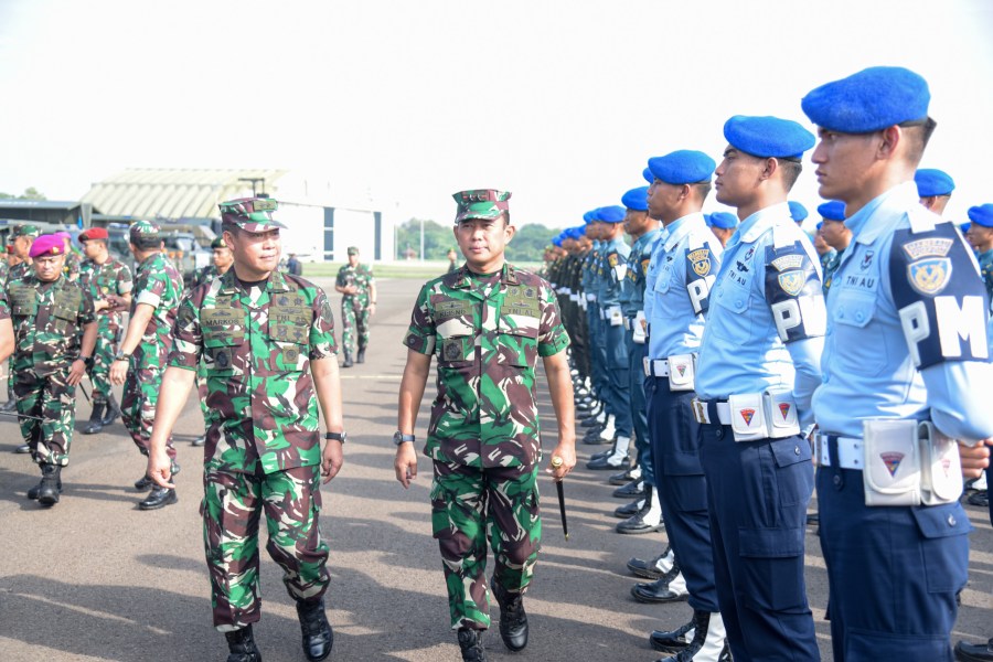 Panglima Kolinlamil Laksda TNI Hudiarto Krisno Utomo, PSC (J) M.A., M.M.S., CHRMP menghadiri apel gelar pasukan pengamanan Pemilu tahun 2024 yang berlangsung di Taxy Way Echo Halim Perdanakusuma, Jakarta Timur, Kamis (1/2/2024).