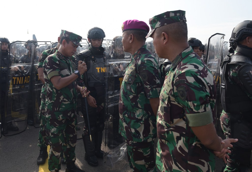 “Maka saya tekankan kepada prajurit agar tingkatkan kewaspadaan guna mengantisipasi kemungkinan perkembangan situasi di wilayah masing-masing. Hindari sikap keragu-raguan dan bertindaklah secara profesional dalam mengantisipasi setiap kecenderungan perkembangan situasi yang berpotensi menganggu stabilitas keamanan dan merusak jalannya proses demokrasi,” ujarnya.