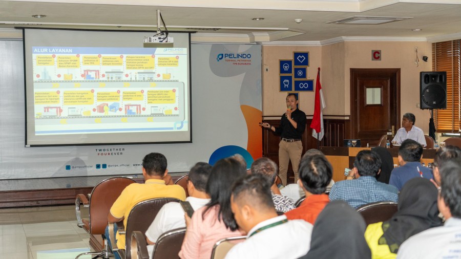PT Terminal Petikemas Surabaya (TPS), salah satu anak perusahaan PT Subholding Pelindo Terminal Petikemas (SPTP), melaksanakan sosialisasi tentang layanan Fumigasi dan Pemeriksaan Kulit Garaman di TPS, Selasa (31/2/2024) yang lalu