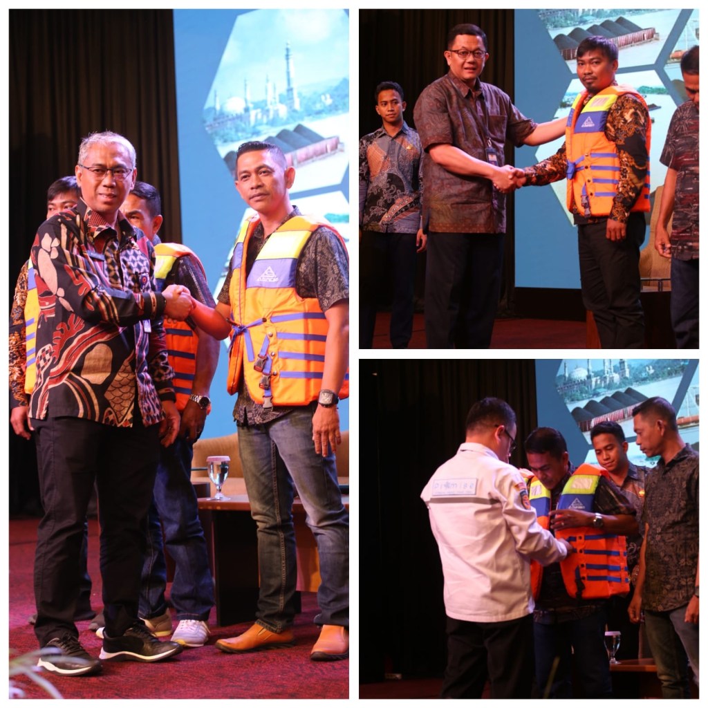 Dalam kegiatan ini juga dilaksanakan acara penyerahan life jacket secara simbolis kepada para perwakilan dari pemilik kapal Pelayaran Rakyat.(Red-MM).