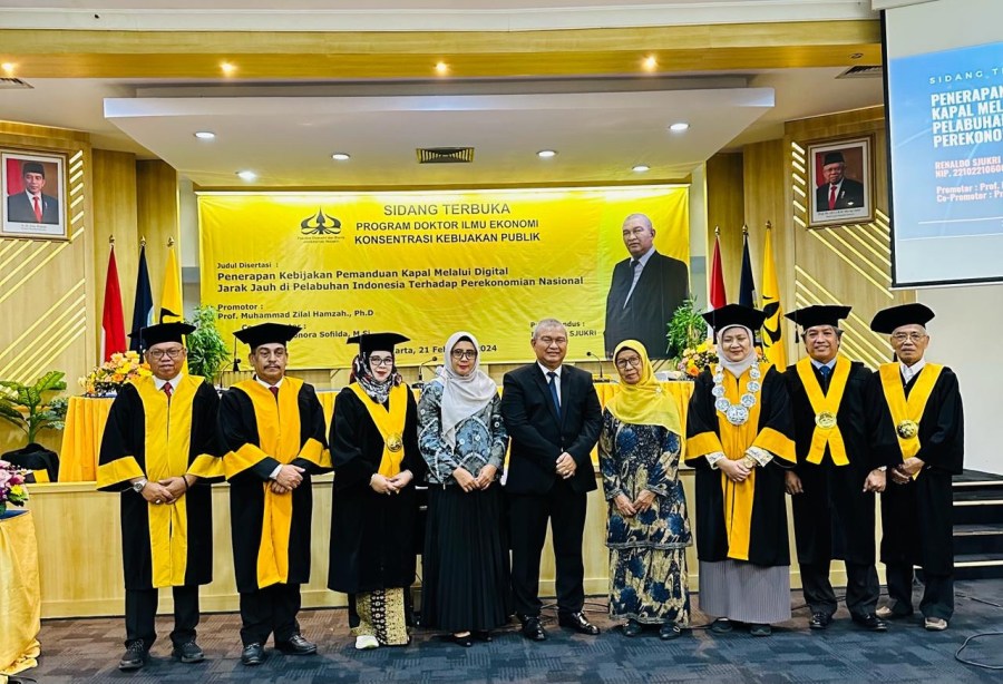 Pegawai Kementerian Perhubungan c.q Direktorat Jenderal Perhubungan Laut atas nama Capt. Renaldo Sjukri, M.M., M.Mar., bertugas di Kantor Kesyabandaran dan Otoritas Pelabuhan Utama (KSOP) Utama Tanjung Priok menjabat sebagai Kepala Bidang Perkapalan dan Kelautan, saat ini telah berhasil meraih gelar Doktor (S3) melalui Program Ilmu Ekonomi Konsentrasi Kebijakan Publik dari Fakultas Ekonomi Universitas Trisakti di Jakarta, hari ini Rabu (21/2/2024).