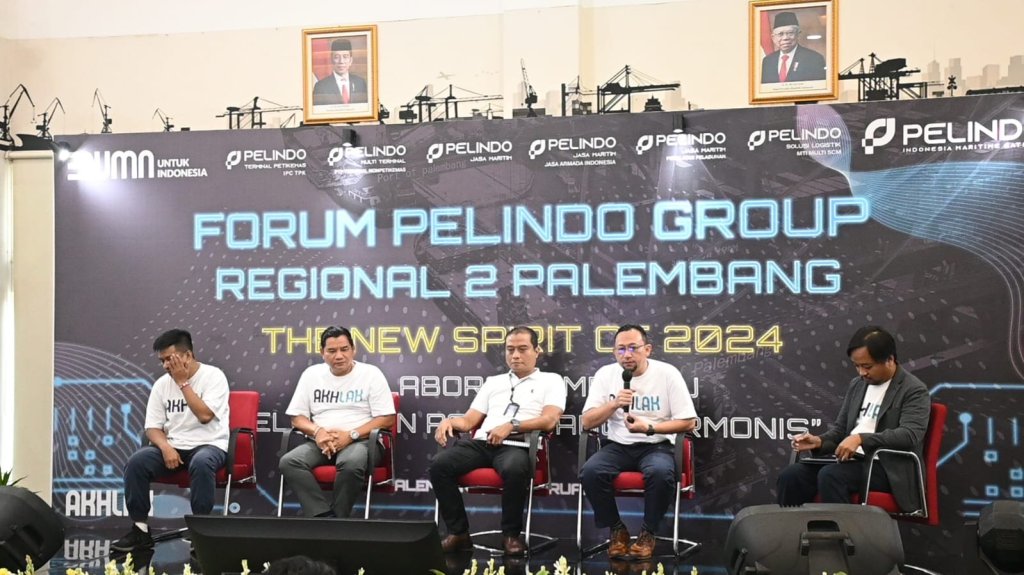 PT Pelabuhan Indonesia (Persero) Regional 2 Palembang menggelar acara Forum Pelindo Group Regional 2 Palembang The New Spirit of 2024 dengan tema “Kolaboratif Menuju Pelabuhan Harmonis” bertempat di Ruang Rapat Musi Kantor Pelindo Regional 2 Palembang, Selasa (20/2/2024).