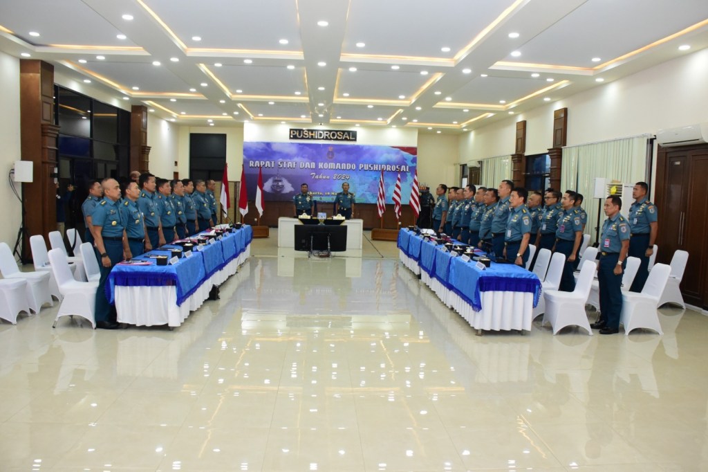 Pusat Hidro-Oseanografi TNI Angkatan Laut (Pushidrosal) menggelar Rapat Staf dan Komando (Rasko) Tahun 2024 bertempat di ruang serbaguna Pushidrosal, Jakarta Utara, Senin (18/3/2024).
