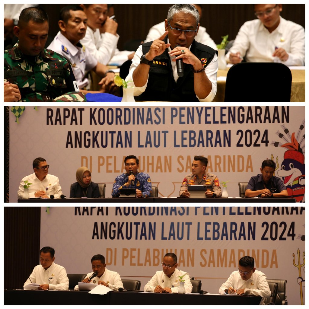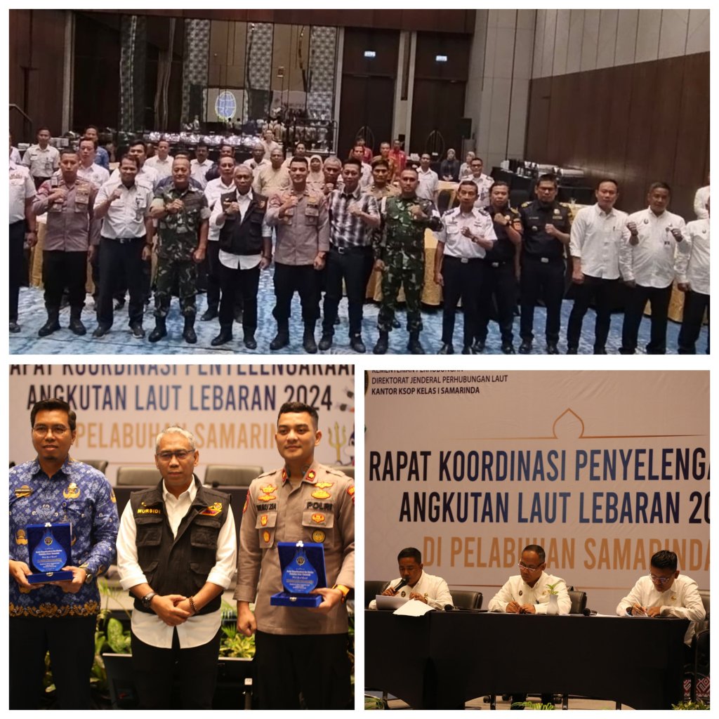Kementerian Perhubungan Cq Direktorat Jenderal Perhubungan Laut melalui Kantor Kesyahbandaran dan Otoritas Pelabuhan (KSOP) Kelas I Samarinda mengadakan Rapat Koordinasi Kesiapan Angkutan Laut Lebaran Tahun 2024 (1445 H) di Pelabuhan Samarinda Kalimantan Timur bertempat di Hotel Mercure Samarinda, Senin (18/3/2024).