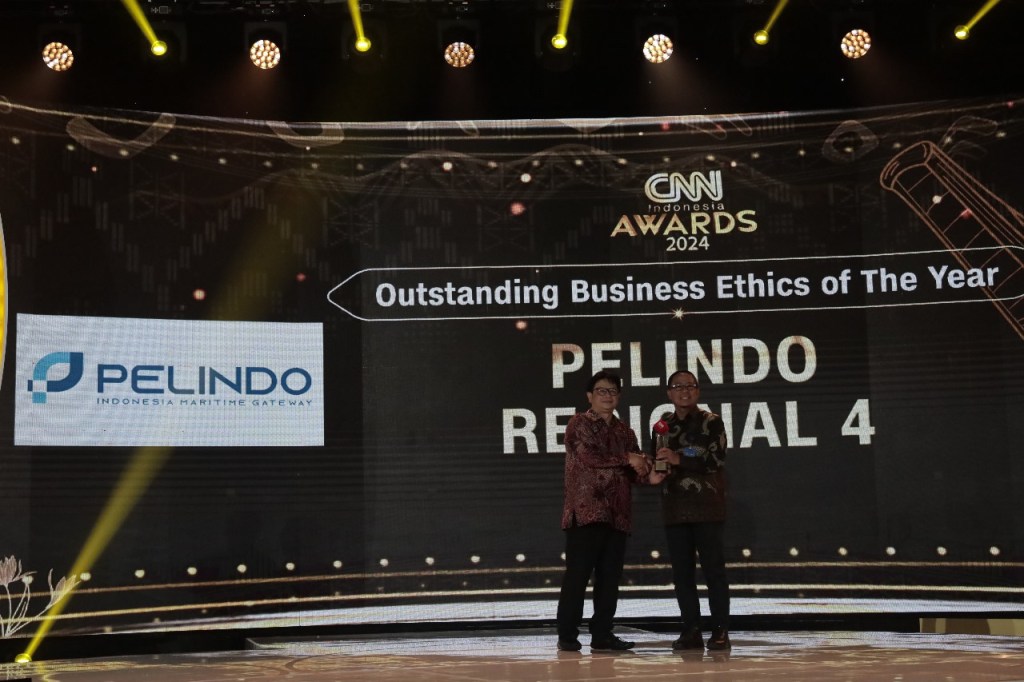 PT Pelabuhan Indonesia (Persero) berhasil menyabet penghargaan dengan kategori “Outstanding Business Ethics of The Year” dalam CNN Indonesia Awards 2024 “Dari Sulsel untuk Nusantara” yang diselenggarakan di Phinisi Ballroom, Claro Hotel, Makassar pada Kamis malam (21/3/2024).