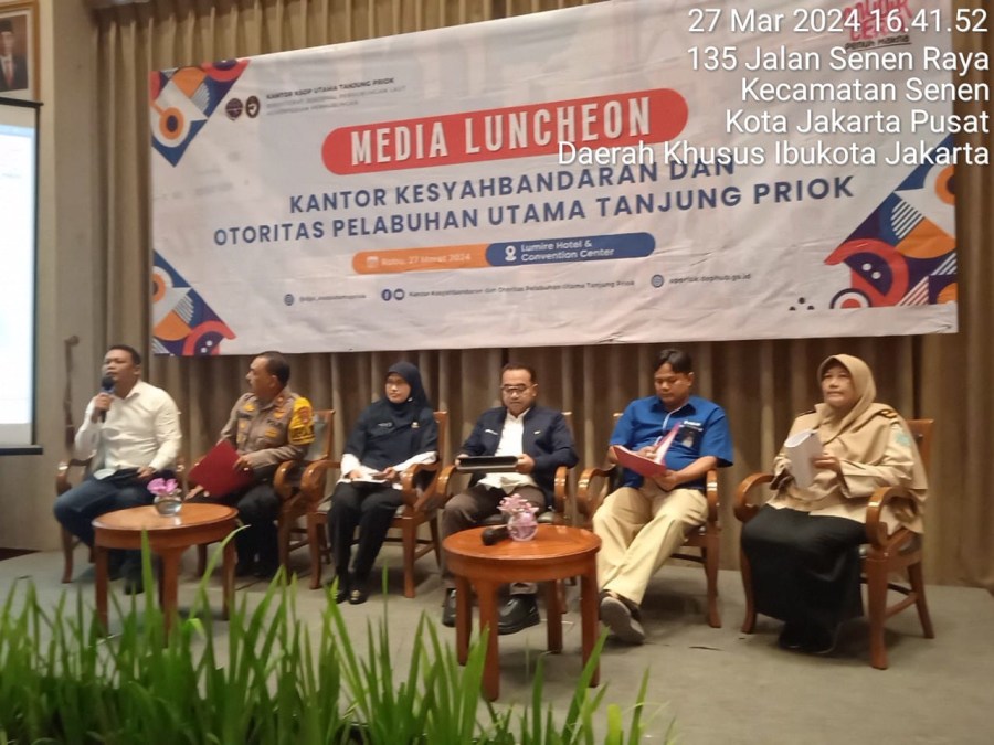 Kementerian Perhubungan Cq Direktorat Jenderal Perhubungan Laut Kantor Kesyahbandaran dan Otoritas Pelabuhan (KSOP) Utama Tanjung Priok Bersama Instansi Pemerintah dan Stakeholders Tanjung Priok melakukan sinergi dan kolaborasi dengan wartawan Maritim yang tergabung di Forum Wartawan Maritim Indonesia (Forwami) yang bertajuk Media Luncheon Kantor KSOP Utama Tanjung Priok bertempat di Lumire Hotel & Convention Center, Jakarta, hari ini (27/3/2024).