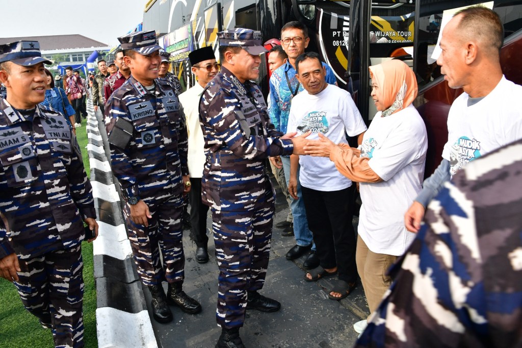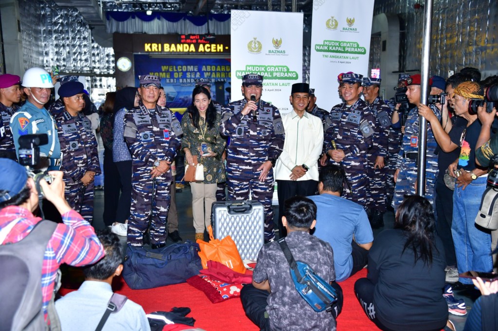 Kepala Staf TNI Angkatan Laut (Kasal) Laksamana TNI Dr. Muhammad Ali melepas secara resmi mudik gratis bersama bagi prajurit TNI AL dan masyarakat tahun 2024 yang akan pulang ke kampung halaman dengan jalur laut maupun jalur darat bertempat di Dermaga Mako Kolinlamil Tanjung Priok, Jakarta Utara, Jumat (5/4/2024).
