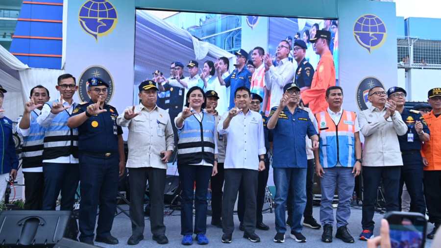 Menteri Perhubungan RI Budi Karya Sumadi pada momen Angkutan Laut Lebaran Tahun 2024 melepas keberangkatan peserta Mudik Gratis sepeda motor dengan kapal laut di Pelabuhan Tanjung Priok, Jakarta (5/4/2024). Kegiatan ini merupakan keberangkatan pertama dari total rangkaian empat keberangkatan mudik gratis yang diselenggarakan Direktorat Jenderal Perhubungan Laut Kementerian Perhubungan.
