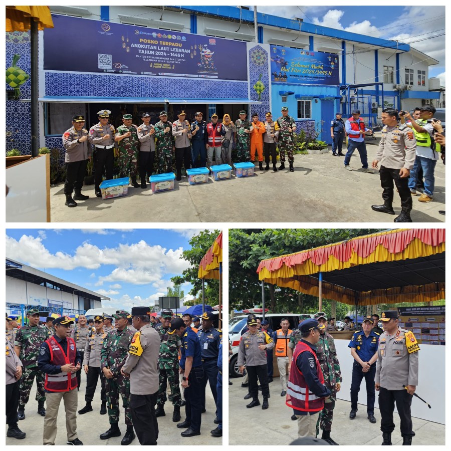 Jelang H-2, Hari Raya Idul Fitri 1445 H (2024 M) Kapolda Kalimantan Timur Irjen Pol Drs. Nanang Avianto M.Si bersama Pangdam Mayor Jenderal TNI Tri Budi Utomo, S.E serta rombongan melaksanakan kunjungan kerja ke pelabuhan Samarinda, dalam rangka monitoring Posko Angkutan Laut Lebaran Tahun 2024 di wilayah Samarinda, hari ini Senin (8/4/2024).
