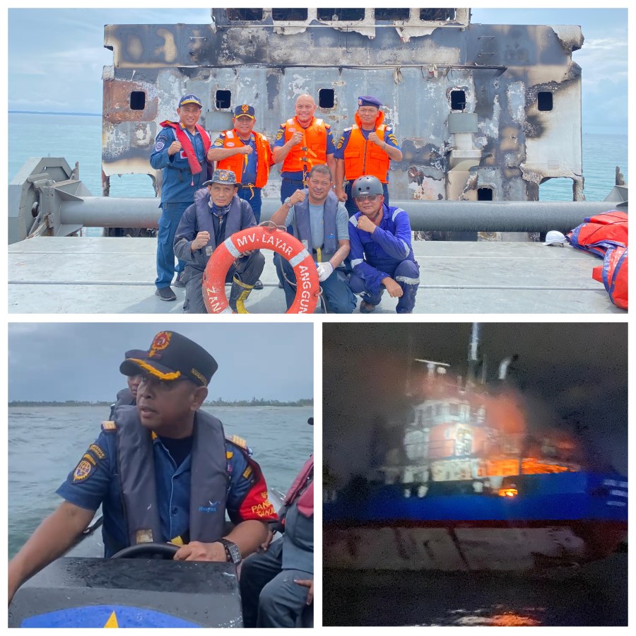 Sugeng menjelaskan penanganan kegiatan SAR dan pemadaman terhadap Kapal MV.LAYAR ANGGUN 8 yang mengalami kebakaran di perairan Tanjung Berikat sebagai berikut :