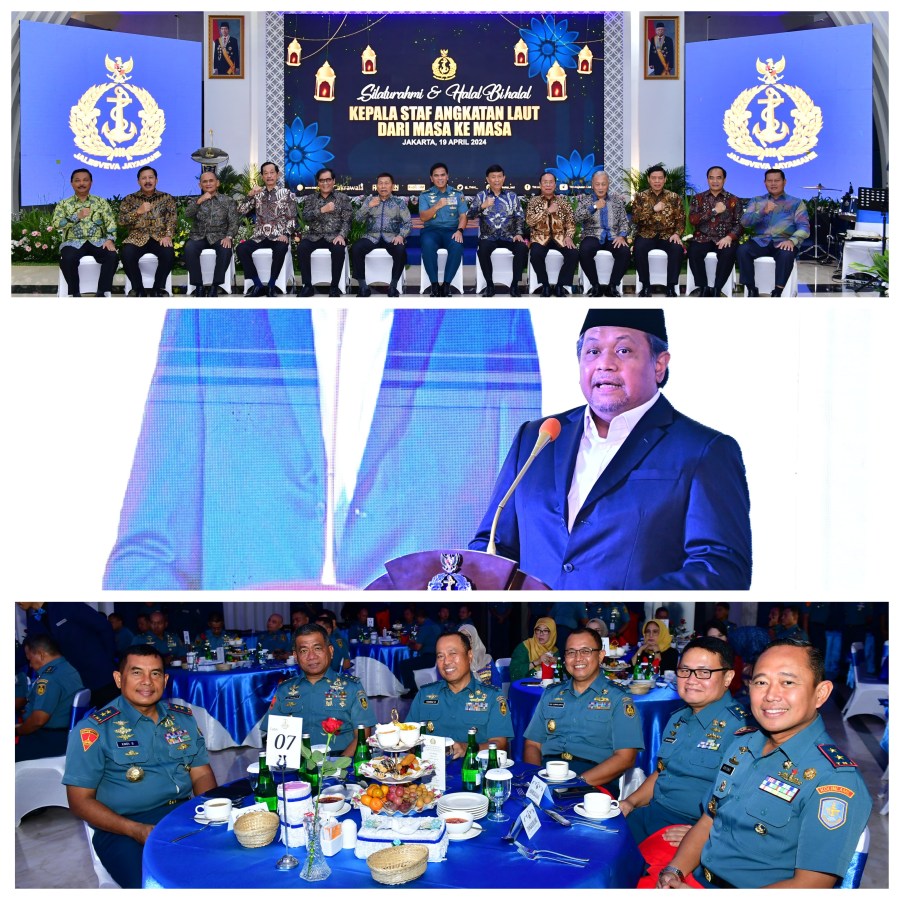 Masih dalam suasana Idul Fitri 1445 H/2024 M. Kepala Staf Angkatan Laut Laksamana TNI Dr. Muhammad Ali, S.E., M.M., M.Tr.Opsla didampingi Ketua Umum Jalasenastri Ny. Fera Muhammad Ali menggelar acara silahturahmi dan Halalbihalal Kasal dari masa ke masa di Jakarta Jumat (19/4/2024).