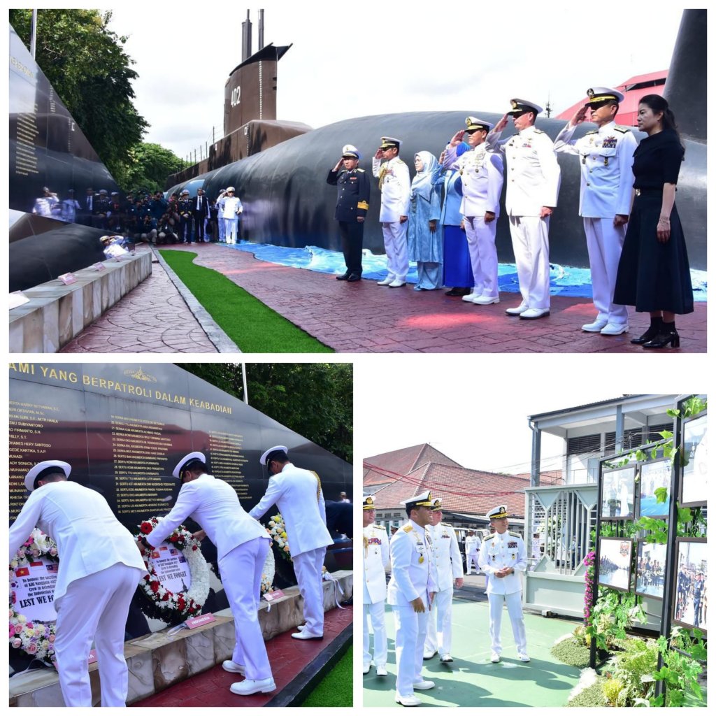 Dalam rangka memperingati tiga tahun gugurnya 53 personel terbaik TNI Angkatan Laut (TNI AL) KRI Nanggala-402, Kepala Staf Angkatan Laut (Kasal) Laksamana TNI Dr. Muhammad Ali didampingi Ketua Umum Jalasenastri Ny. Fera Muhammad Ali memimpin acara yang bertajuk “Commemoration The Service And Sacrifice Of Crew KRI Nanggala-402” di Monumen KRI Nanggala-402 Ujung Koarmada II Surabaya, Jawa Timur, hari ini Minggu (21/4/2024).