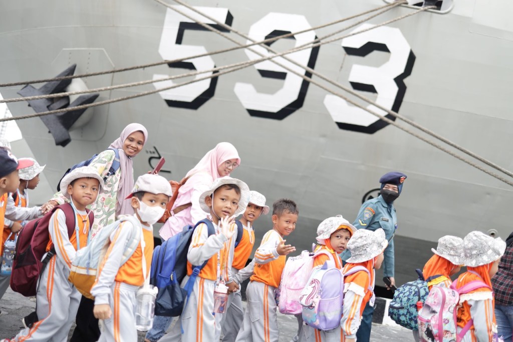 Kegiatan yang difasilitasi oleh Staf Potensi Maritim Kolinlamil ini melibatkan kurang lebih 135 siswa-siswi Taman Kanak-Kanak yang terdiri dari TK Tunas Muda IKKT Jakarta Barat, TK Aksara Jakarta Selatan dan TK Raudhatul Athfal Nurul Qur’an Jakarta Timur yang berkesempatan melaksanakan warship tour mengunjungi KRI Banda Aceh-593 pada hari Kamis (25/4/2024).