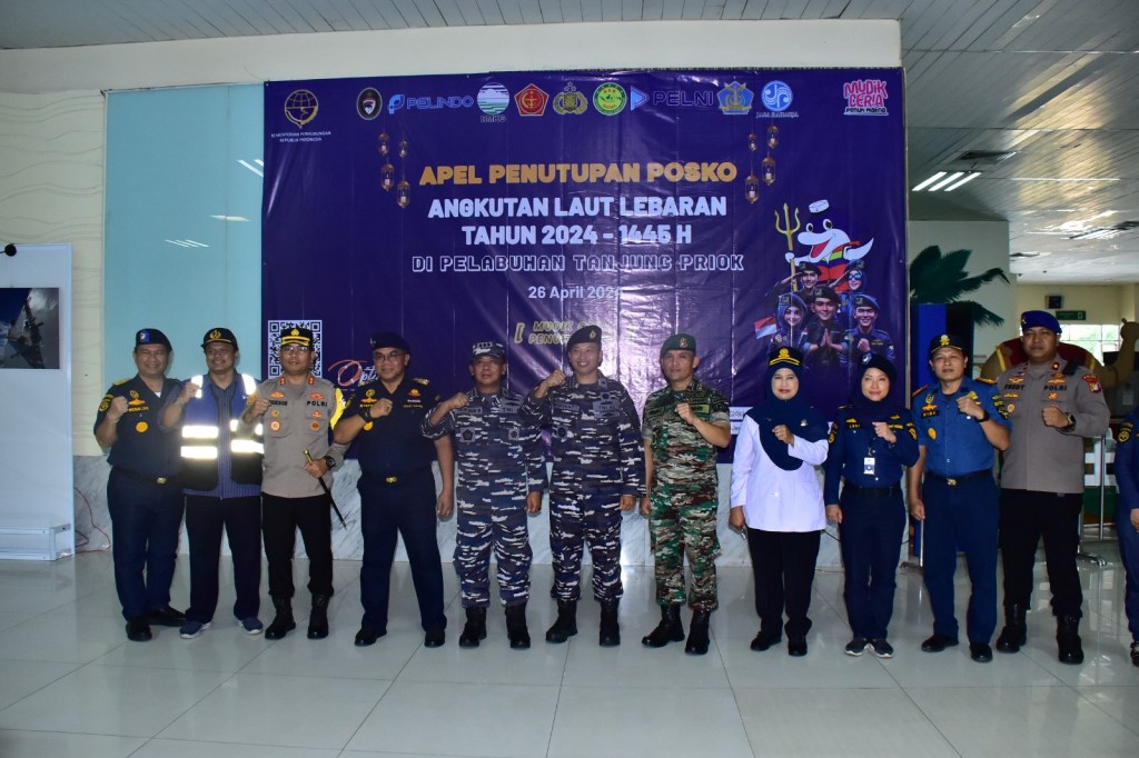 Asisten Potensi Maritim (Aspotmar) Pangkolinlamil Kolonel Laut (P) Teguh Iman Wibowo dalam hal ini mewakili Panglima Kolinlamil Laksda TNI Hudiarto Krisno Utomo, PSC(j) M.A., M.M.S., CHRMP menghadiri Apel Penutupan Posko Penyelenggaraan Angkutan Laut Lebaran Tahun 2024 (1445 H) yang dipimpin Kepala Kantor Kesyabandaran Dan Otoritas Pelabuhan Utama Tanjung Priok M. Takwim Masuku pada hari Kamis (26/4/2024).