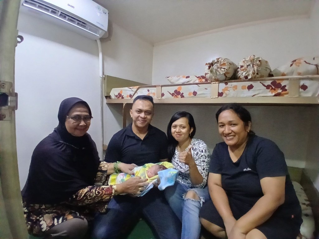 Proses persalinan darurat tersebut berjalan lancar sehingga berhasil lahir sehat seorang bayi laki laki dengan BB 3,115 kg dan TB 48 cm. Setelah evaluasi persalinan didapatkan perdarahan aktif sedang pada ibu bayi karena robekan di jalan lahir, karena keterbatasan alat pertolongan medis Kapten kapal diarahkan untuk singgah di pulau Siau untuk evakuasi darurat, pasien kemudian di jemput oleh dokter jaga, ambulance RS Siau, dan personel Pos TNI AL yang berada di Pulau Siau di Pelabuhan Penumpang Siau.