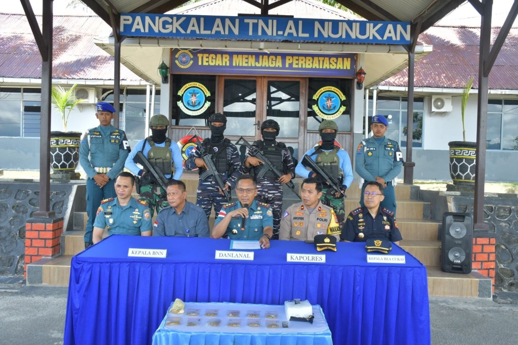 Prajurit TNI Angkatan Laut (TNI AL) dalam hal ini tim gabungan dari Second Fleet Quick Response (SFQR) Pangkalan TNI AL (Lanal) Nunukan berhasil menggagalkan penyelundupan Narkotika golongan satu jenis sabu-sabu seberat 1.018 gram dan sekitar 500 pil ekstasi dari jaringan Internasional asal Tawau Malaysia di Perairan Sebatik Kabupaten Nunukan, Kalimantan Utara, Senin kemarin (29/4/2024).