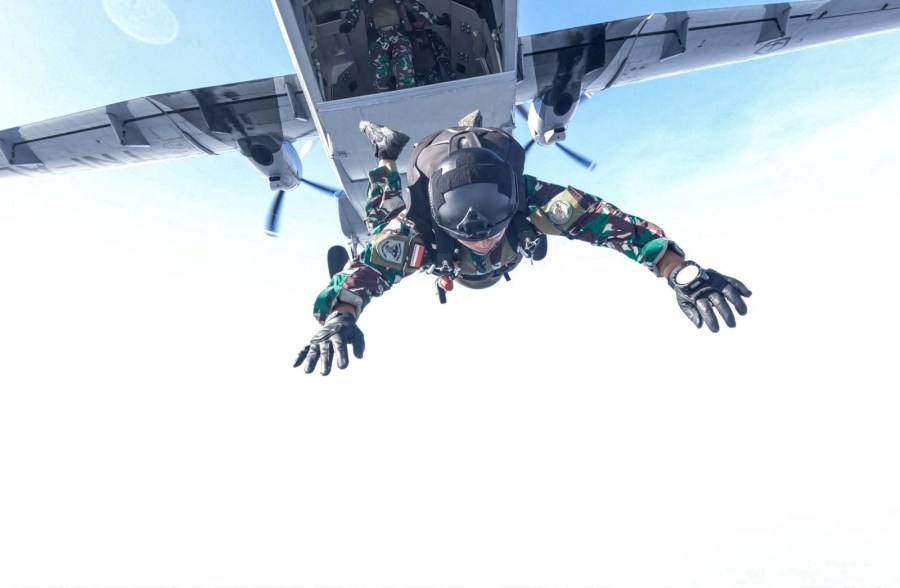 TNI Angkatan Laut (TNI AL) dalam hal ini Tim Intai Amfibi Marinir (Taifib) dan United States (US) Marine Forces Pacific (MARFORPAC) First Marine Expeditionary Force (I MEF) 1st Reconnaissance Battalion melatih kemampuan infiltrasi lintas udara dengan melaksanakan penerjunan combat Free fall menggunakan pesawat NC 212-200 Aviocar dari Skuadron 600 Wing Udara 1, pada rangkaian Latihan Bersama (Latma) Reconnaissance Exchange (RECONEX) 2024 pada materi kemampuan dan keterampilan lintas udara di Lanudal Pondok Cabe, Tangerang Selatan, Senin (6/5/2024).
