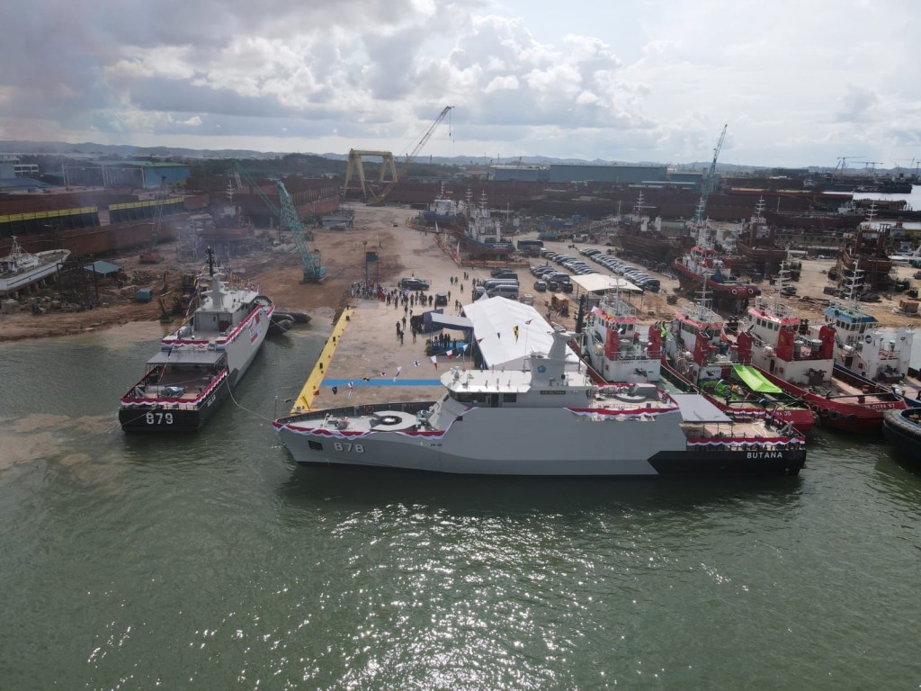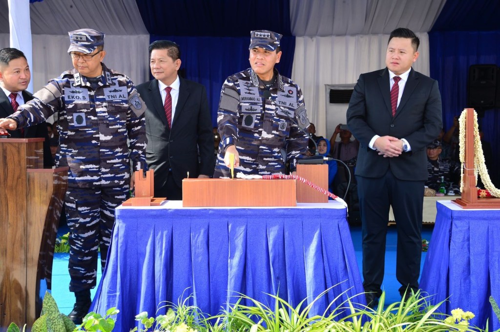 TNI Angkatan Laut (TNI AL) kembali diperkuat dengan kehadiran 2 kapal perang baru tipe Patroli Cepat (PC) 40 buatan dalam negeri yang ditandai dengan Shipnaming dan Launching yang dipimpin oleh Kepala Staf Angkatan Laut (Kasal) Laksamana TNI Dr. Muhammad Ali didampingi Ketum Jalasenastri Ny. Fera Muhammad Ali di galangan kapal PT. Citra Shipyard, Kepulauan Riau, Batam, pada hari ini, Selasa (7/5/2024).