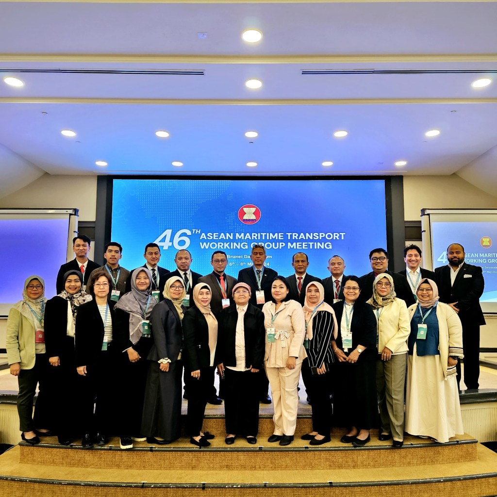 Kementerian Perhubungan cq. Direktorat Jenderal Perhubungan Laut kembali turut serta dalam Delegasi Pemerintah Indonesia menghadiri Pertemuan Kelompok Kerja Transportasi Maritim ASEAN ke-46 (The 46th ASEAN Maritime Transport Working Group) yang diselenggarakan di Bandar Seri Begawan, Brunei Darussalam pada tanggal 6 sampai dengan tanggal 8 Mei 2024 (hari ini Kamis).