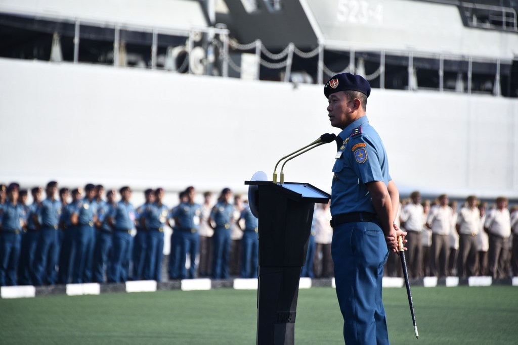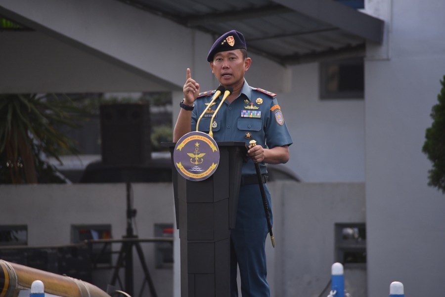Panglima Kolinlamil Laksda TNI Hudiarto Krisno Utomo, PSC(j) M.A., M.M.S., CHRMP memimpin Apel Khusus yang diikuti seluruh Prajurit dan PNS Kolinlamil bertempat di Lapangan Moeljono Silam, Mako Kolinlamil Tanjung Priok, Jakarta Utara, pada hari Senin (13/5/2024).