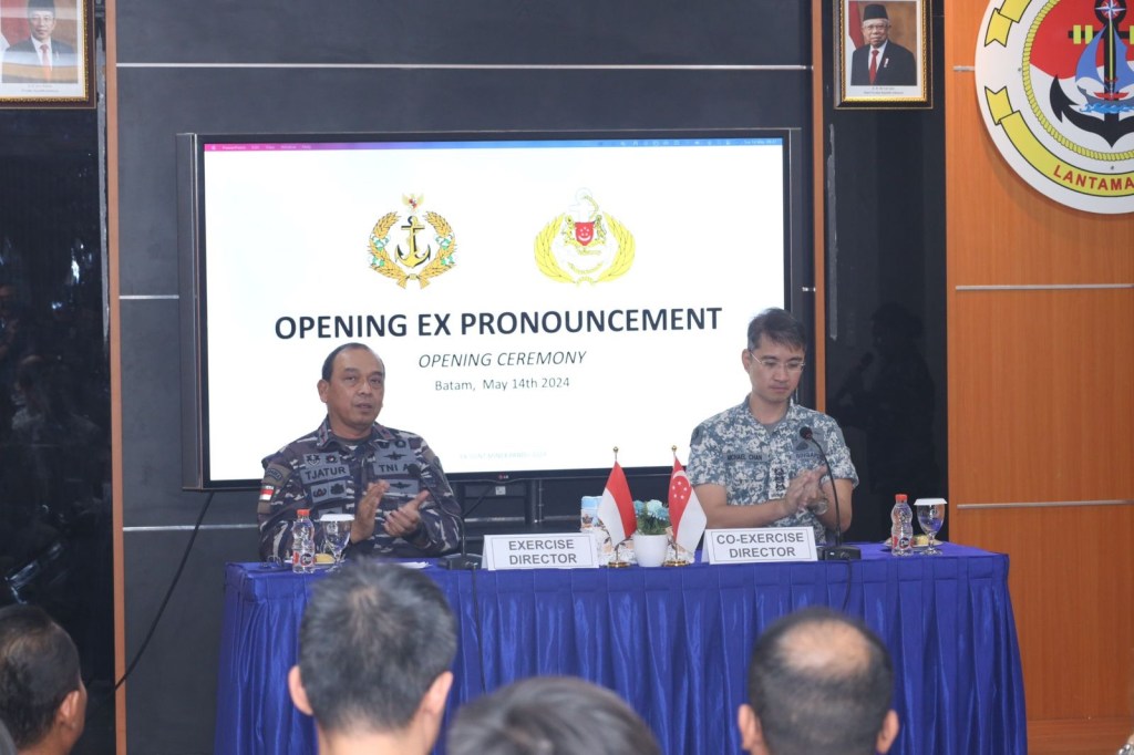 Latihan Bersama (Latma) Joint Minex Pandu Tahun 2024 antara TNI Angkatan Laut (TNI AL) dengan Republic Of Singapore Navy (RSN) secara simbolis dibuka oleh Komandan Pangkalan Utama TNI AL IV Batam (Danlantamal IV Batam) Laksamana Pertama TNI Tjatur Soniarto di Batam, Kepulauan Riau, Selasa (14/5/2024).