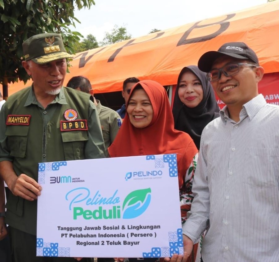 Secara simbolis, bantuan diserahkan langsung oleh General Manager Pelindo Regional 2 Teluk Bayur dalam bentuk natura berupa paket sembako antara lain berisikan beras, minyak goreng, mie instan serta air mineral, serta bantuan matras untuk tenda pengungsian, atau sesuai dengan yang sedang dibutuhkan oleh masyarakat, dan diterima langsung oleh Gubernur Sumatera Barat Mahyeldi Ansharullah di Posko Tanggap Darurat Bencana yang berlokasi di SDN 08, Bukik Batabuah, Kabupaten Agam.