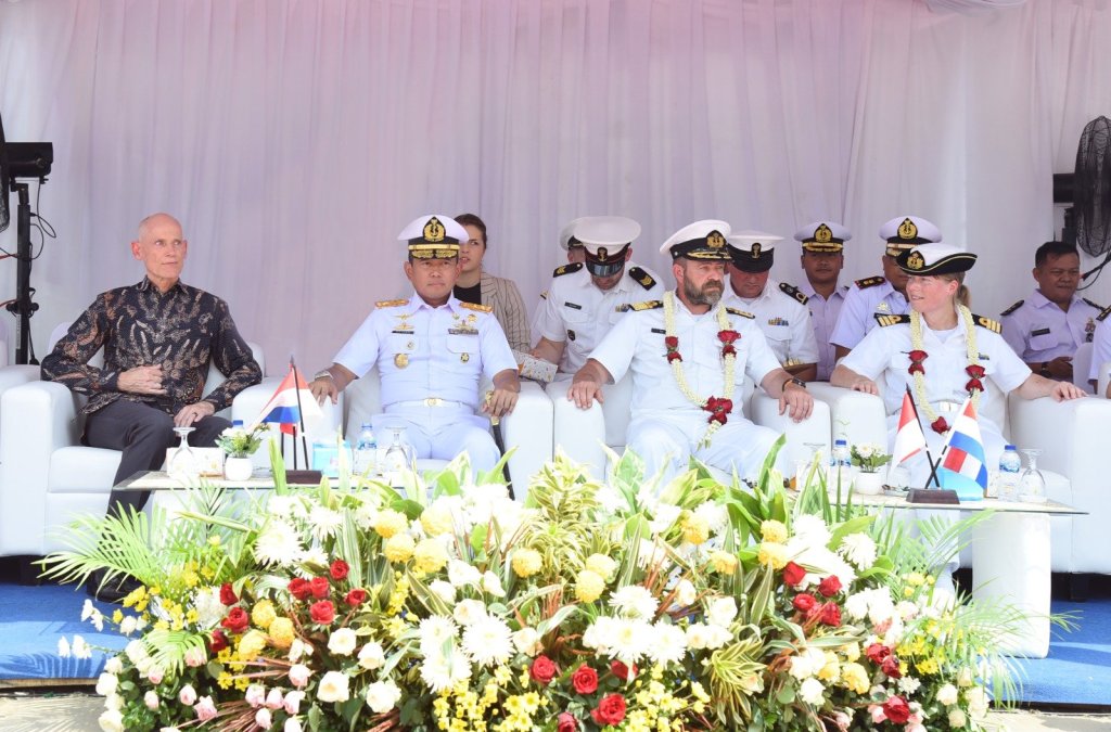 Dalam rangka meningkatkan hubungan kerjasama antara Indonesia dan Belanda, khususnya dalam hal ini TNI Angkatan Laut dengan Royal Netherlands Navy (RNLN). Panglima Komando Lintas Laut Militer Laksda TNI Hudiarto Krisno Utomo, PSC(j)., M.A., M.M.S., CHRMP menerima kunjungan kehormatan Kepala Staf Angkatan Laut Belanda (Chief of Navy of the Royal Netherlands Navy), Vice Admiral Rene Tas dengan menggunakan Kapal Perang Belanda HNLMS Tromp (F803), bertempat di Dermaga JICT 2 Tanjung Priok, Jakarta Utara, Rabu (15/5/2024).