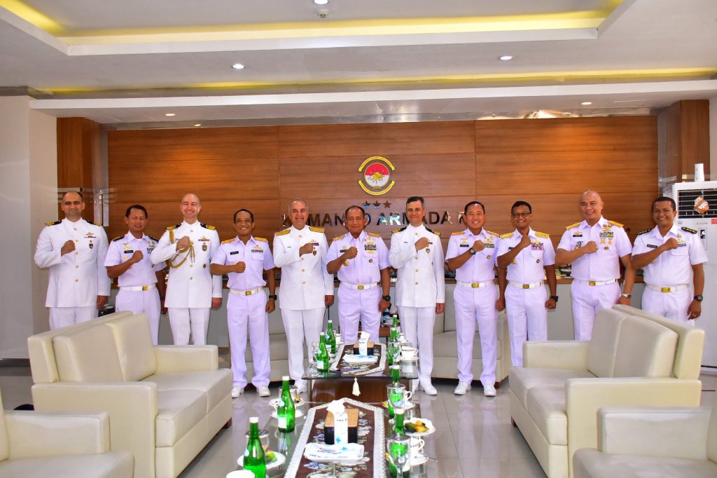 Panglima Kolinlamil Laksda TNI Hudiarto Krisno Utomo, PSC(j) M.A., M.M.S., CHRMP mendampingi Panglima Koarmada I Laksda TNI Dr. Yoos Suryono H, M.Tr.(Han)., M.Tr.Opsla., menerima kunjungan kehormatan Komandan Komando Wilayah Laut Utara Turki (Commander Of The Turkish Northern Sea Area Command) Rear Admiral (UH) Rafet Oktar menggunakan Kapal TCG Kinaliada (F-514), bertempat di Markas Komando Republik Indonesia, Jalan Gunung Sahari Jakarta Pusat, Jumat (17/5/2024).
