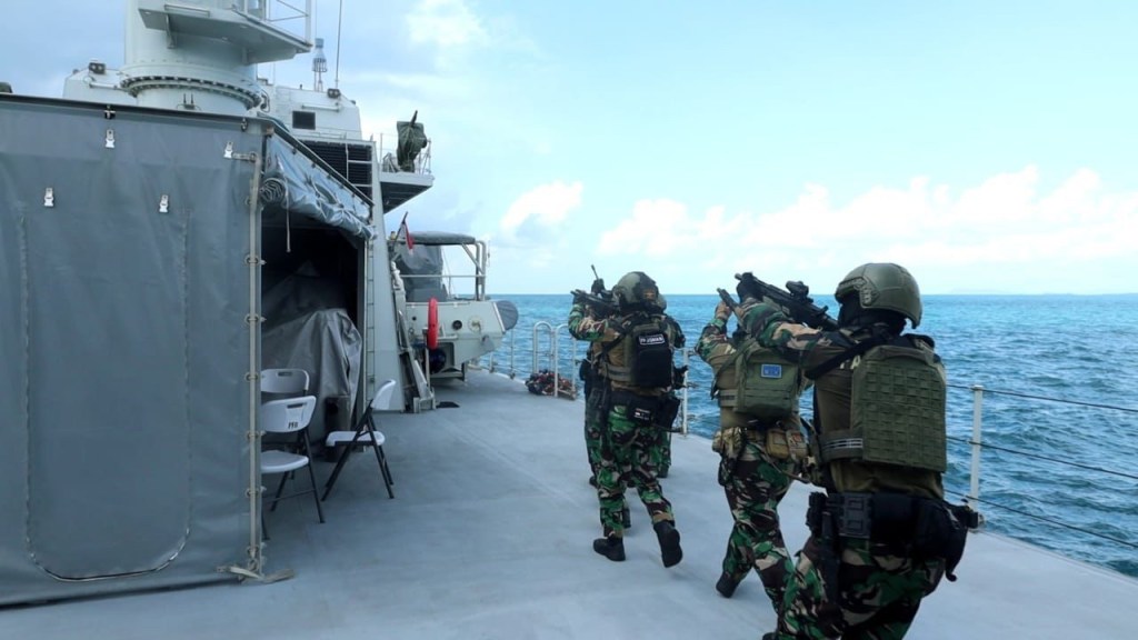 Tahap laut (Sea Phase) resmi mengakhiri Latihan Bersama (Latma) Joint Minex Pandu Tahun 2024 antara TNI Angkatan Laut dengan Republic Of Singapore Navy (RSN) yang telah terlaksana selama tujuh hari terhitung mulai tanggal 13-19 Mei 2024 di Batam, Kepulauan Riau, Minggu (19/5/2024)kemarin.