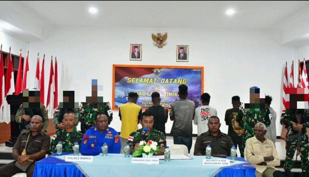 TNI Angkatan Laut (TNI AL) dalam hal ini Prajurit Pangkalan TNI Angkatan Laut (Lanal) Timika dibawah jajaran Lantamal XI Merauke, berhasil mengamankan 7 (tujuh) orang terduga pelaku penjarahan disertai pemerasan dan pengancaman terhadap ABK LCT. KNS 2 milik Kontraktor PT Freeport Indonesia (PTFI) yang sedang memeriksa kondisi tanah disekitaran Perairan Amamapare, Kabupaten Mimika, Papua Tengah atau di area sekitar Pelabuhan Porsite milik PT Freeport Indonsia (PTFI). Rabu (22/5/2024)