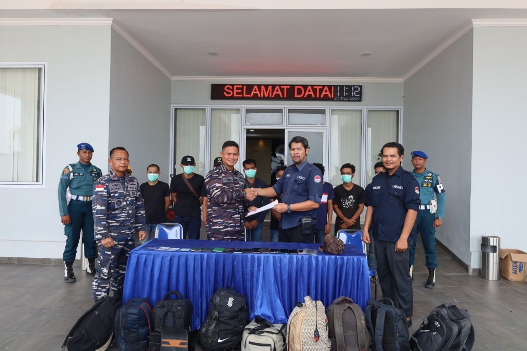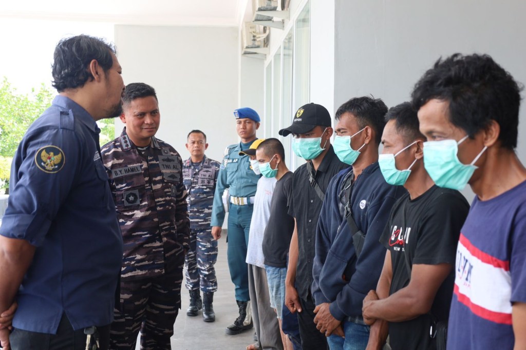 TNI Angkatan Laut (TNI AL) melalui oleh Tim Fleet One Quick Response (F1QR) Pangkalan TNI AL (Lanal) Dumai bersinergi dengan instansi terkait berhasil mengamankan pemulangan Pekerja Migran Indonesia (PMI) non prosedural melalui jalur ilegal dari Malaysia menuju Indonesia di Pesisir Jl. Dumai Pakning, Kelurahan Pelintung, Kecamatan Medang Kampai, Kota Dumai, Kamis (23/5/2024).