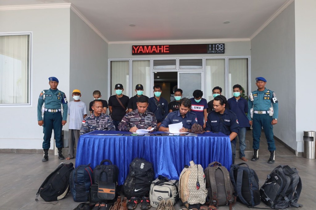 Setelah dilaksanakan pengejaran dan penyisiran Tim F1QR Lanal Dumai berhasil mengamankan sejumlah sembilan orang (laki-laki) PMI non prosedural dan barang bukti dua unit sepeda motor roda dua diduga milik pengurus PMI non prosedural, tujuh buah KTP, 10 unit HP serta tiga buah pasport. Selanjutnya dibawa ke Mako Lanal Dumai untuk dilaksanakan pendataan, pengecekan barang bawaan dan pengecekan kesehatan.