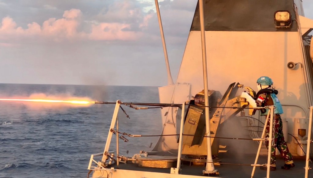 Guna mempertahankan kesiapsiagaan tempur, KRI Diponegoro-365 yang tergabung dalam Satgas Maritime Task Force (MTF) TNI Konga XXVIII-O/UNIFIL, melaksanakan Gunnery Exercise (GUNNEX) atau latihan penembakan di Zona Barbara, Laut Mediterania, Lebanon,Selasa (21/5/2025) yang lalu.