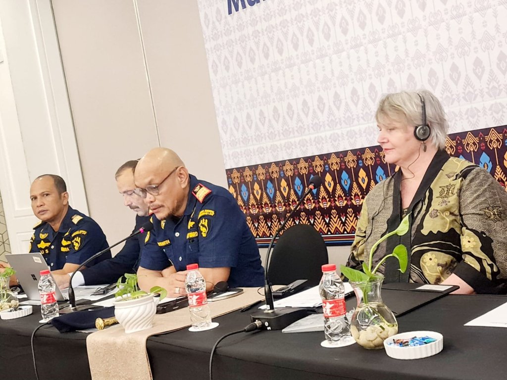 Direktur Kesatuan Penjagaan Laut dan Pantai, Jon Kenedi dalam sambutannya mengucapkan terima kasih kepada Australian Government Departement of Home Affairs yang telah memfasilitasi dalam penyelenggaraan kegiatan Marine Security Train The Trainer.