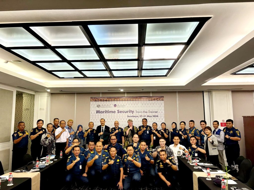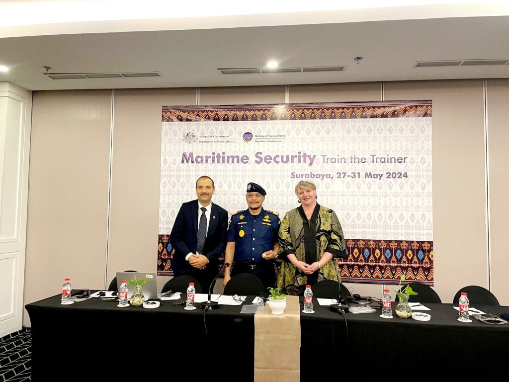 Kementerian Perhubungan c.q Direktorat Jenderal Perhubungan Laut melalui Direktorat Kesatuan Penjagaan Laut dan Pantai menggelar kegiatan Marine Security Train The Trainer bersama Australian Government Departement of Home Affrairs selama 5 (lima) hari yang dimulai pada tanggal 27 sampai dengan tanggal 31 Mei 2024 di Surabaya.