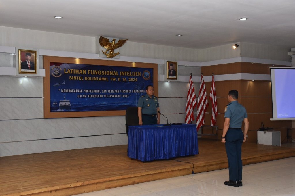 Staf Intelijen Komando Lintas Laut Militer mengadakan Latihan Fungsional Intelijen Sintel Kolinlamil Triwulan II Tahun Anggaran 2024 dengan membekali para Prajurit dan PNS Kolinlamil dalam bidang Administrasi Intelijen. Latihan Fungsional ini dibuka langsung oleh Asintel Pangkolinlamil Kolonel Laut (P) Fafan Yudo Brahmono, M.Tr.Hanla., M.M., CHRMP yang dilaksanakan pada hari Rabu (5/6/2024), bertempat di Gedung Laut Natuna, Mako Kolinlamil Tanjung Priok, Jakarta Utara.