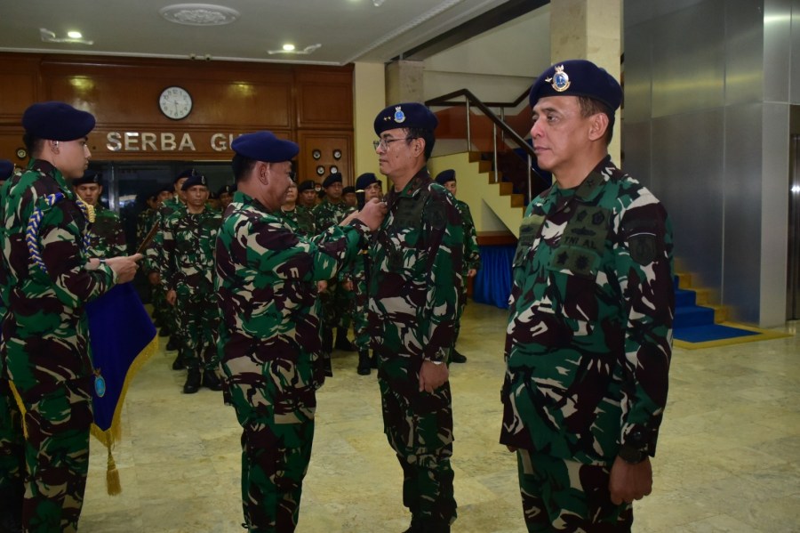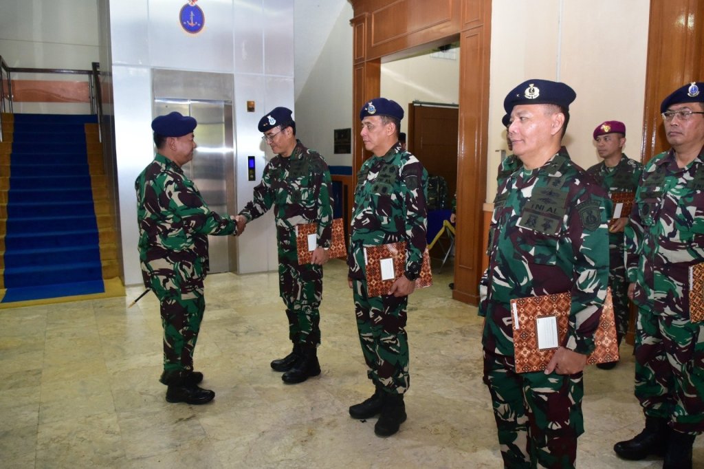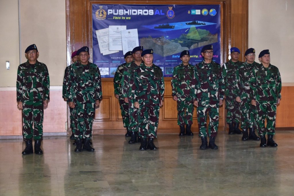 Komandan Pusat Hidro-Oseanografi TNI Angkatan Laut (Danpushidrosal) Laksamana Madya TNI Dr. Budi Purwanto, S.T., M.M memimpin Penganugerahan Brevet Kehormatan Hidro-Oseanografi bertempat di lobby Pushidrosal, Jakarta Utara, Jumat (7/6/2024).