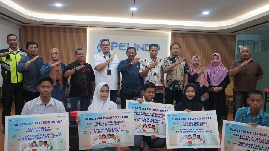 PT Pelindo Jasa Maritim, Subholding dari PT Pelabuhan Indonesia (Persero) atau Pelindo melalui Program Tanggung Jawab Sosial dan Lingkungan (TJSL), memberikan beasiswa dan tempat sampah daur ulang kepada sejumlah sekolah menengah atas (SMA) di Kota Makassar, Sabtu (8/6/2024).