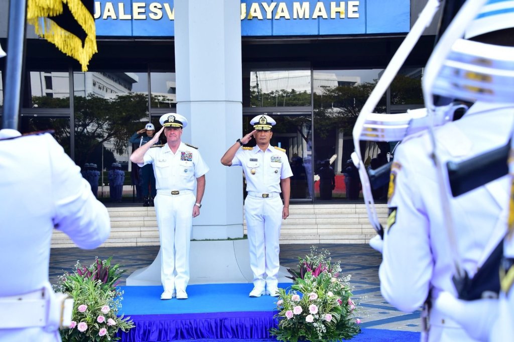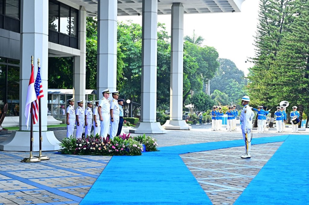 Kedatangan Admiral Samuel J. Paparo dan rombongan di halaman Gedung R.E Martadinata Mabesal disambut hangat oleh Wakasal Laksamana Madya TNI Erwin S. Aldedharma beserta jajarannya dengan pasukan jajar kehormatan.