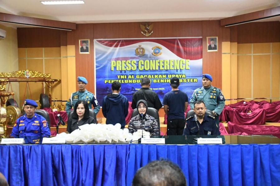 TNI Angkatan Laut (TNI AL) melalui Tim Second Fleet Quick Response (SFQR) Pangkalan TNI Angkatan Laut (Lanal) Yogyakarta berhasil menggagalkan upaya penyelundupan Benih Bening Lobster (BBL) di Karangwuni Kulonprogo, Yogyakarta pada Kamis (13/6/2024)..