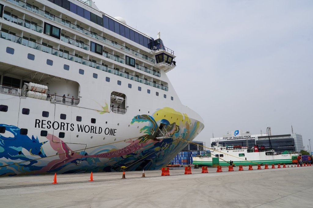 Kapal pesiar MV. Cruise Resort World One berbendera Bahama, berukuran panjang 268.29 meter dengan bobot 75.338 GT, dimana kapal ini merupakan salah satu kapal Cruise berukuran besar yang mengisi daftar kunjungan sandar kapal wisata di pelabuhan Tanjung Priok.