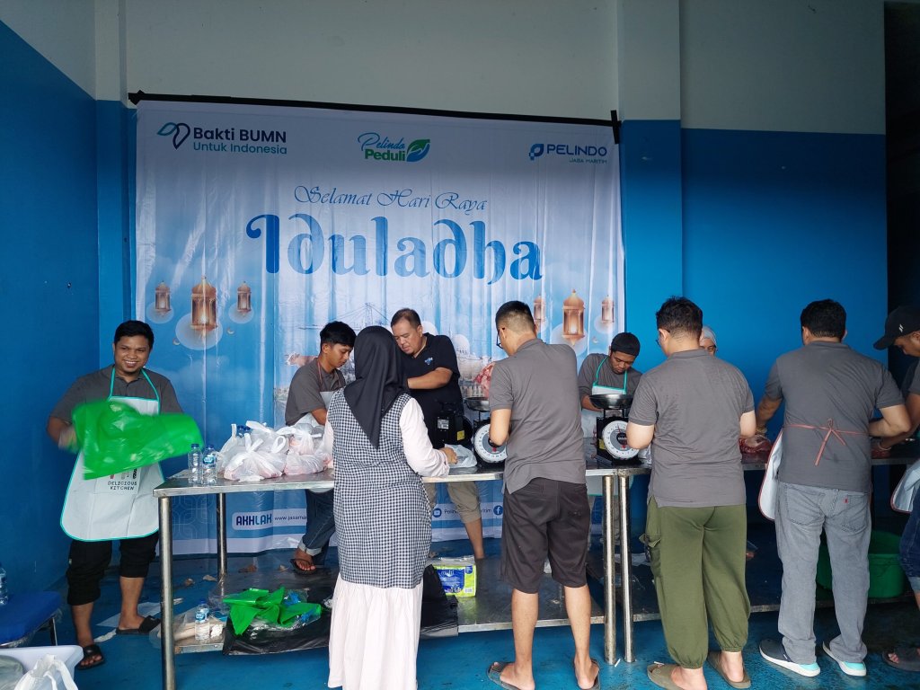 Mewujudkan kebahagiaan ada Perayaan Hari Raya Idul Adha dha 1445 Hijriyah Subholding Pelindo Jasa Maritim (SPJM) beserta 8 anak usahanya, melaksanakan penyembelihan hewan kurban dengan total sebanyak 40 ekor sapi dan 53 ekor kambing, hari ini Senin, (17/6/2024).