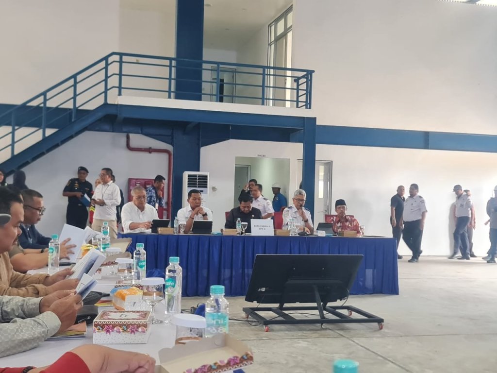Ketua Komisi V DPR RI, Lasarus, bersama anggota komisi, melakukan kunjungan kerja ke Pelabuhan Internasional Kijing bertempat di Gedung TPFT (Tempat Pemeriksaan Fisik Terpadu) Kabupaten Mempawah, Kalimantan Barat, pada Kamis, (20/2024.