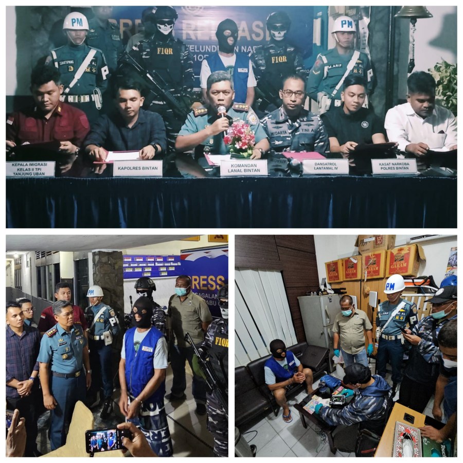Danlanal menambahkan dalam penangkapan ini, tim gabungan TNI AL berhasil mengamankan 1 (satu) orang terduga pelaku/kurir berinisial “F” beserta barang bukti narkoba berjenis Sabu-sabu dengan berat ± 770 gram serta speed boat dengan mesin tempel 15 PK. Selanjutnya terduga tersangka dan barang bukti dibawa ke Mako Lanal Bintan untuk dilaksanakan pemeriksaan sebelum diserahkan ke Satnarkoba Polresta Bintan guna pemeriksaan dan pendalaman lebih lanjut.