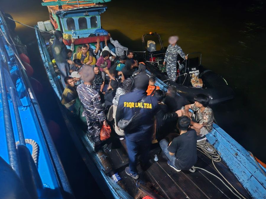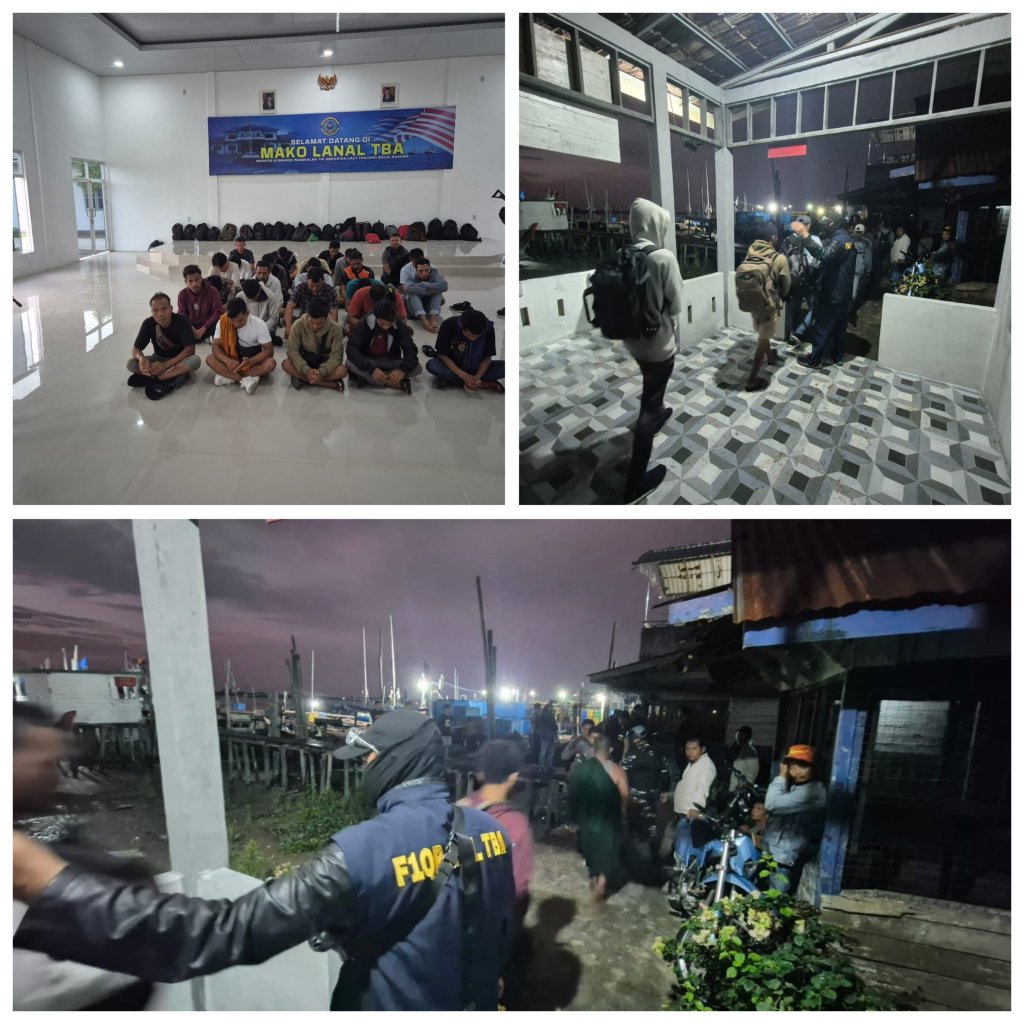 Prajurit TNI AL melaui Tim Fleet One Quick Response (F1QR) Pangkalan TNI AL Tanjung Balai Asahan (Lanal TBA) bersama tim gabungan dari Kanwil DJBC Sumatera Utara, KPPBC TMP C Teluk Nibung, dan Kantor Imigrasi Kelas II TPI Tanjung Balai kembali berhasil menggagalkan pengiriman 39 orang Pekerja Migran Indonesia (PMI) Non Prosedural dan 3 orang ABK Kapal yang hendak berangkat ke Malaysia melalui jalur perairan Pulau Aruah. Sabtu (29/6/2024).